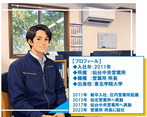 仙北営業所で4年間、営業としての経験を積み、2017年に仙台中央営業所へ異動となり、そして2023年、私が35歳の時に、社長より「営業所所長を任せたい」との話をいただきました。