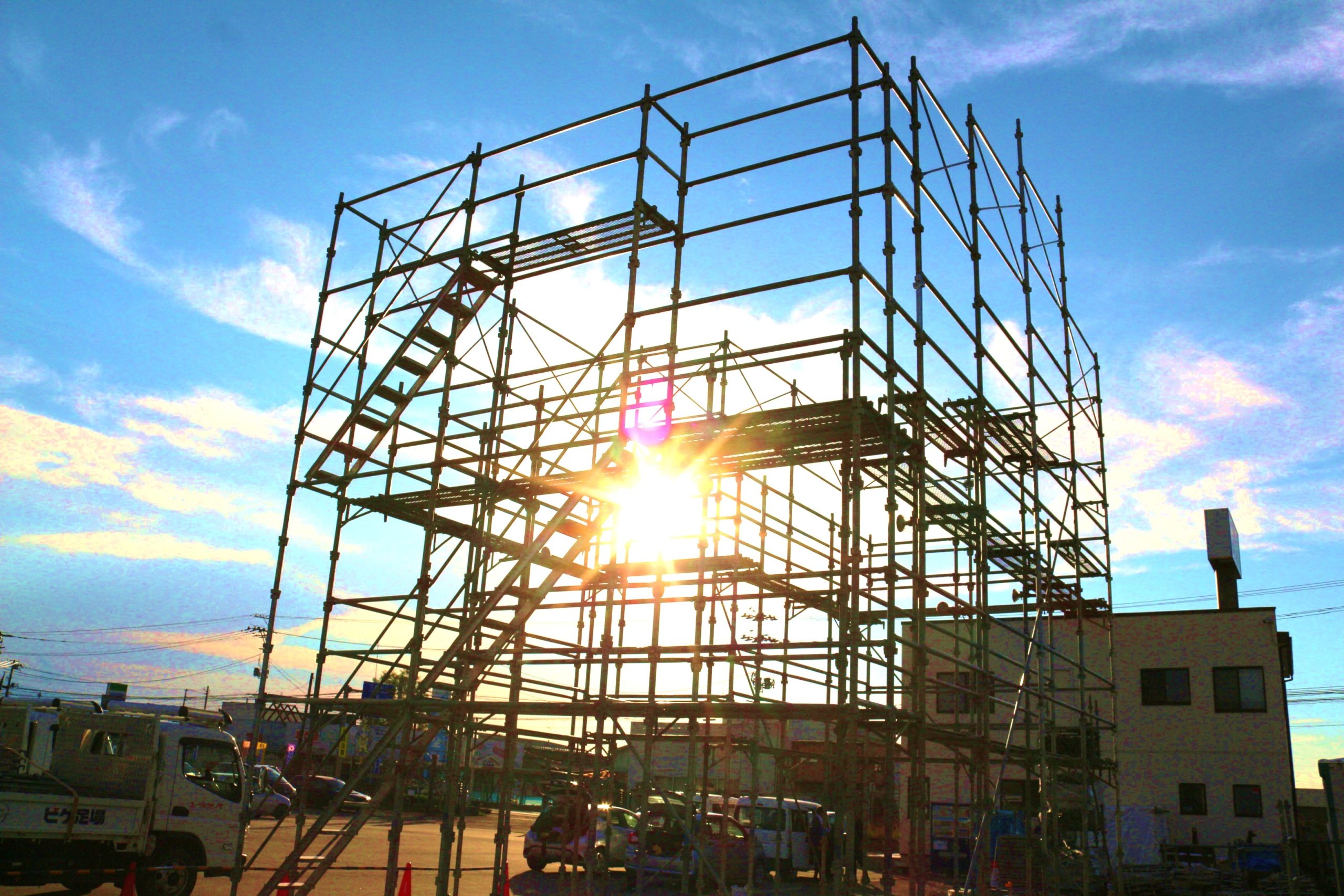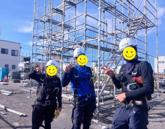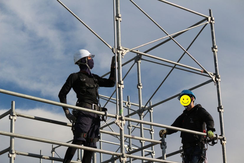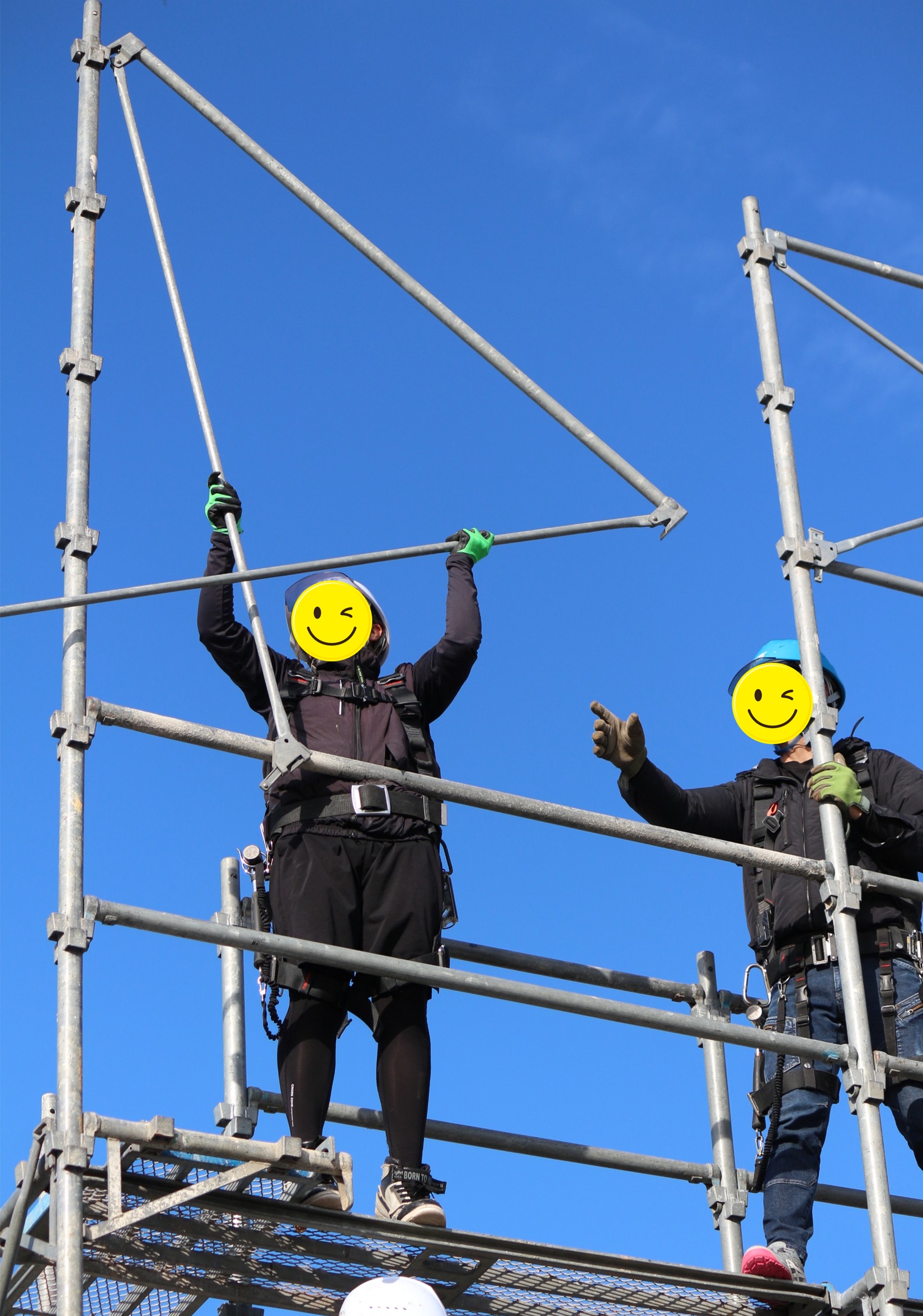 研修は2日間開催され、初日には新築想定のフル施工足場の組立・解体を行いました。