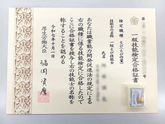 言わずと知れた、とびの中でも最難関の国家資格です🔨