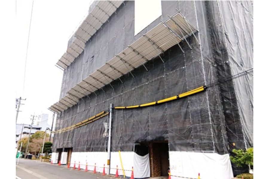 改修工事宮城県 マンション 修繕工事 マンションの外壁・防水工事のため、外部足場を施工しました。 建物が道路や商業施設に面しているので、第三者災害に最大限の注意を払って作業しました。 また、マンション駐車場が躯体のすぐ側面にあるため、入居者様の車が傷つかないよう、 車用のシートをかぶせて養生するなどの物損防止の工夫を行い、無事に施工できました。